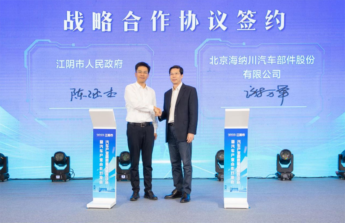 北京海納川汽車部件股份有限公司與江陰市人民政府簽署戰(zhàn)略合作協(xié)議。